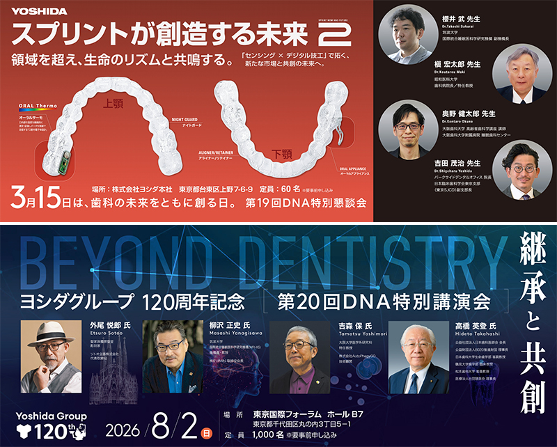 歯科医療機械の総合商社である株式会社ヨシダ(本社:東京都台東区、代表取締役社長:山中一剛)は、2026年に創業120周年を迎えることを記念し、同年8月2日(日)東京国際フォーラムにて第20回「DNA(Dental Next Action)特別講演会」を開催いたします。