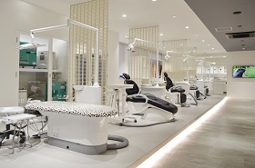 本物の歯科医院をイメージできるレイアウトで「ご開業・リニューアル・入れ替えなど様々なシチュエーションに合わせた診療空間」や「IoT連携による音声操作(ユニット・脈拍/TVモニタ)」がご体感できます。